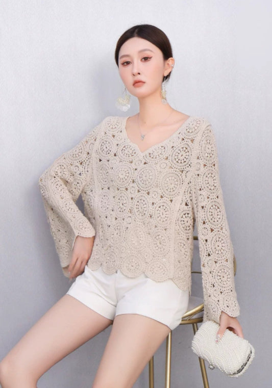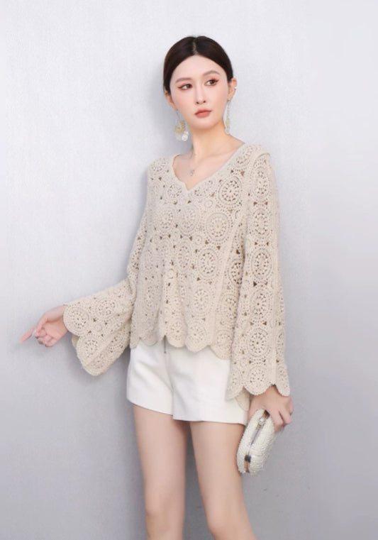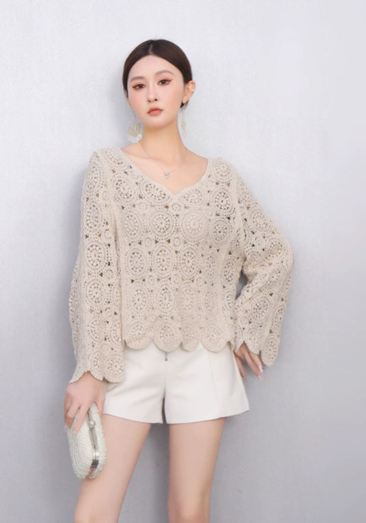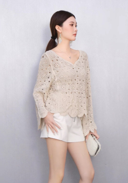 呢件蕾絲鉤花上衣設計精緻,手工感十足。