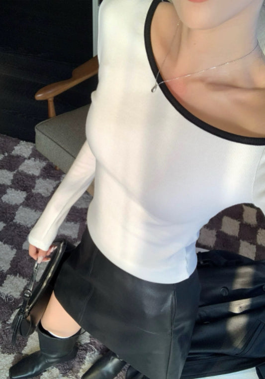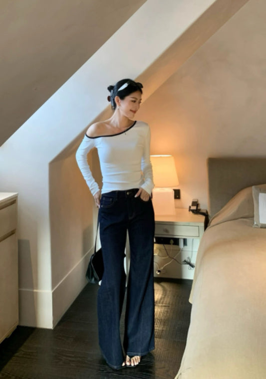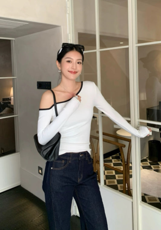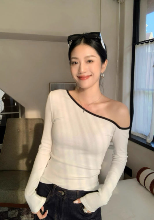 斜肩長袖上衣