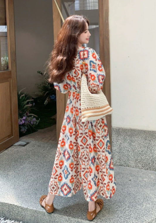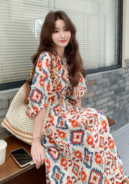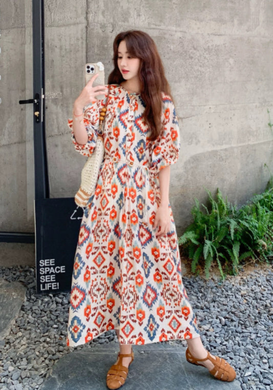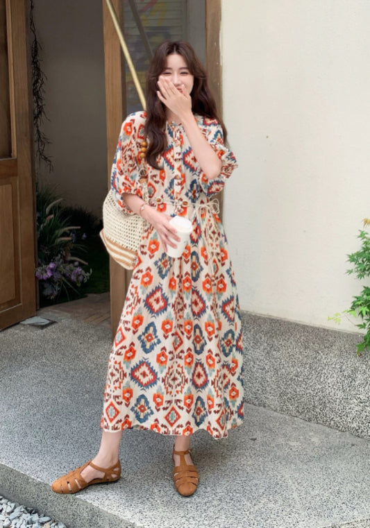 泡泡袖度假裙