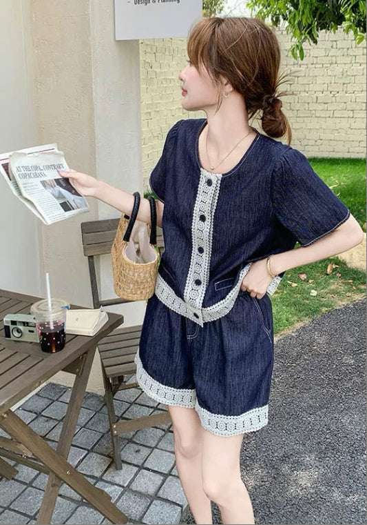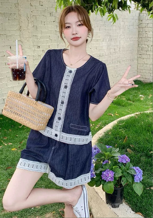 牛仔蕾絲邊套裝