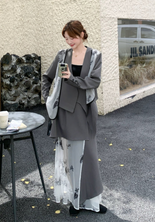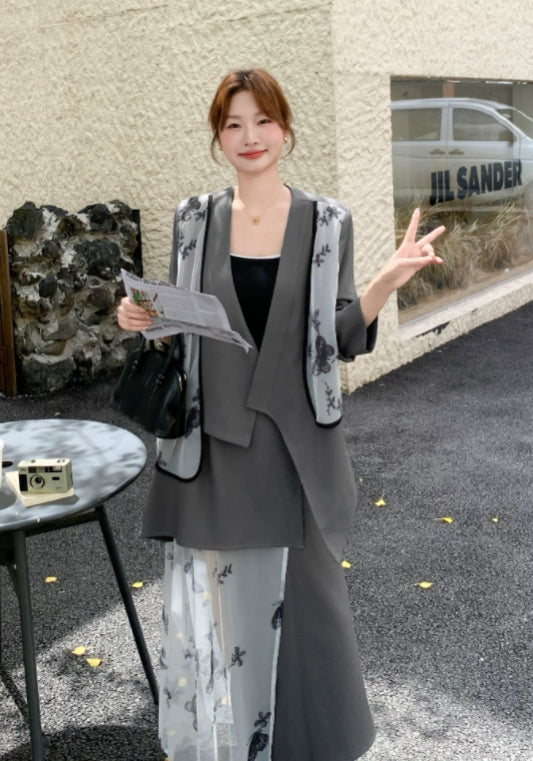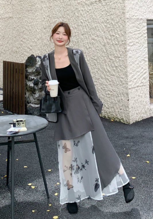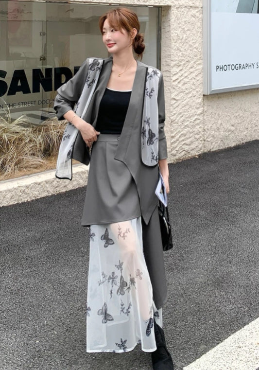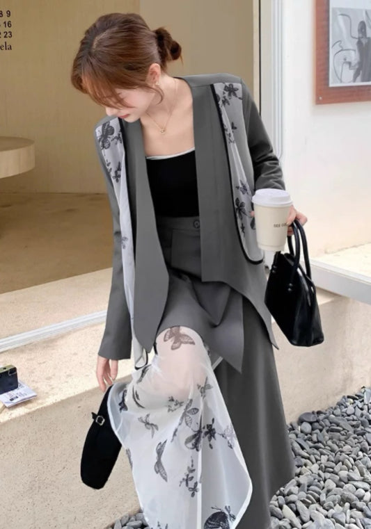 西裝蝴蝶紗拼接套裝