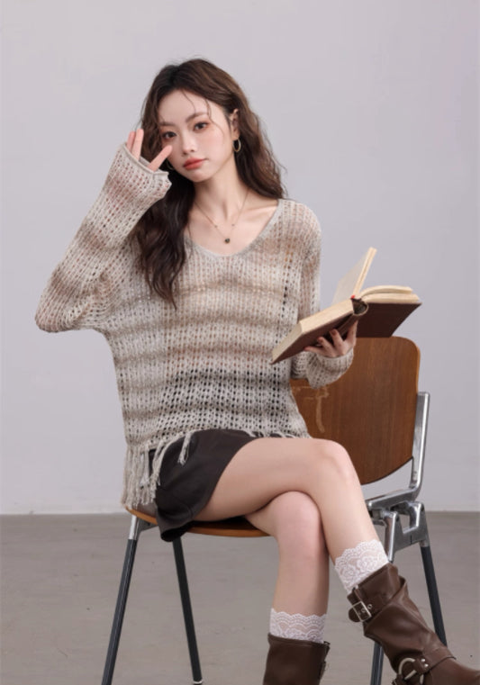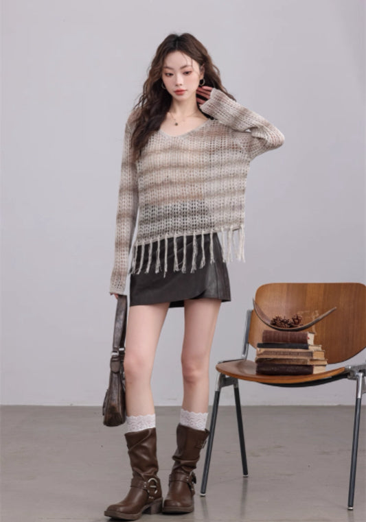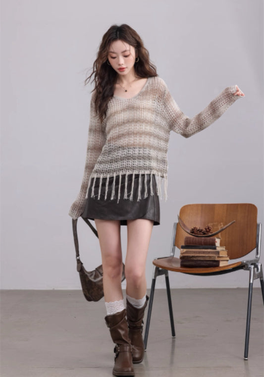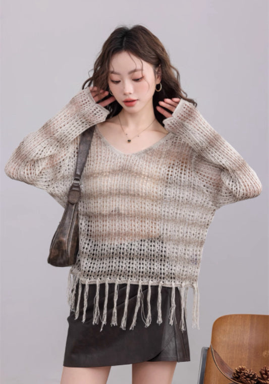 呢件流蘇針織上衣設計感強,休閒百搭。