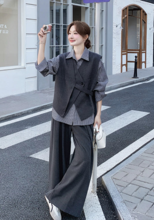 層次感十足的馬甲搭配寬鬆上衣,展現隨性與幹練時尚。