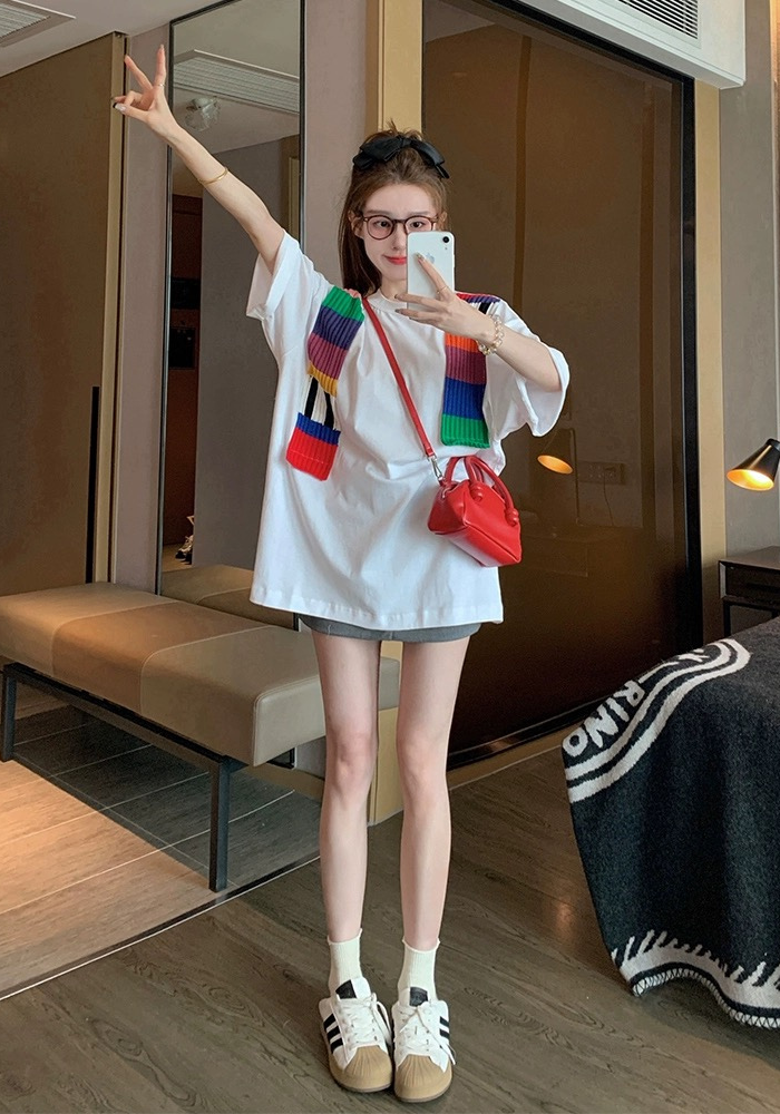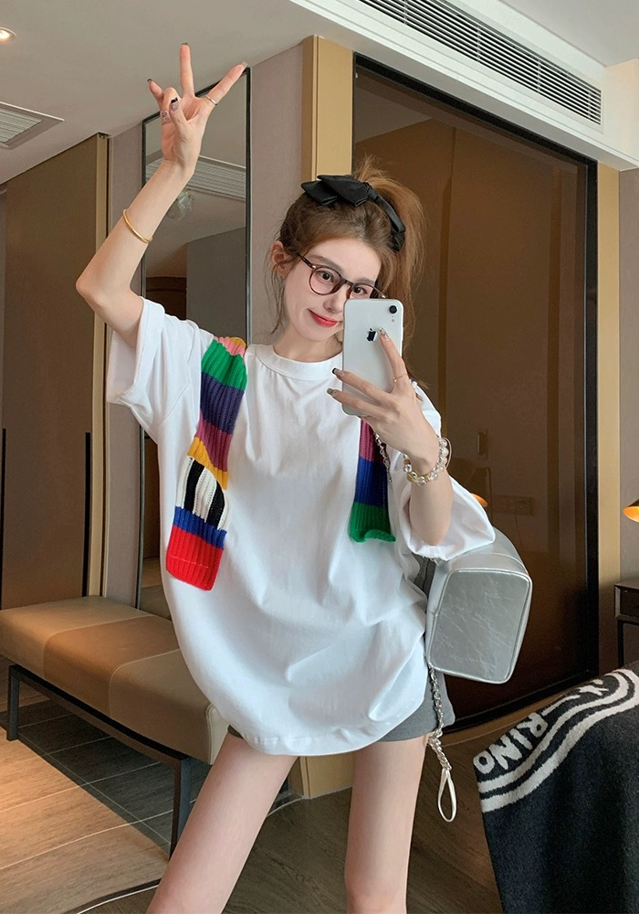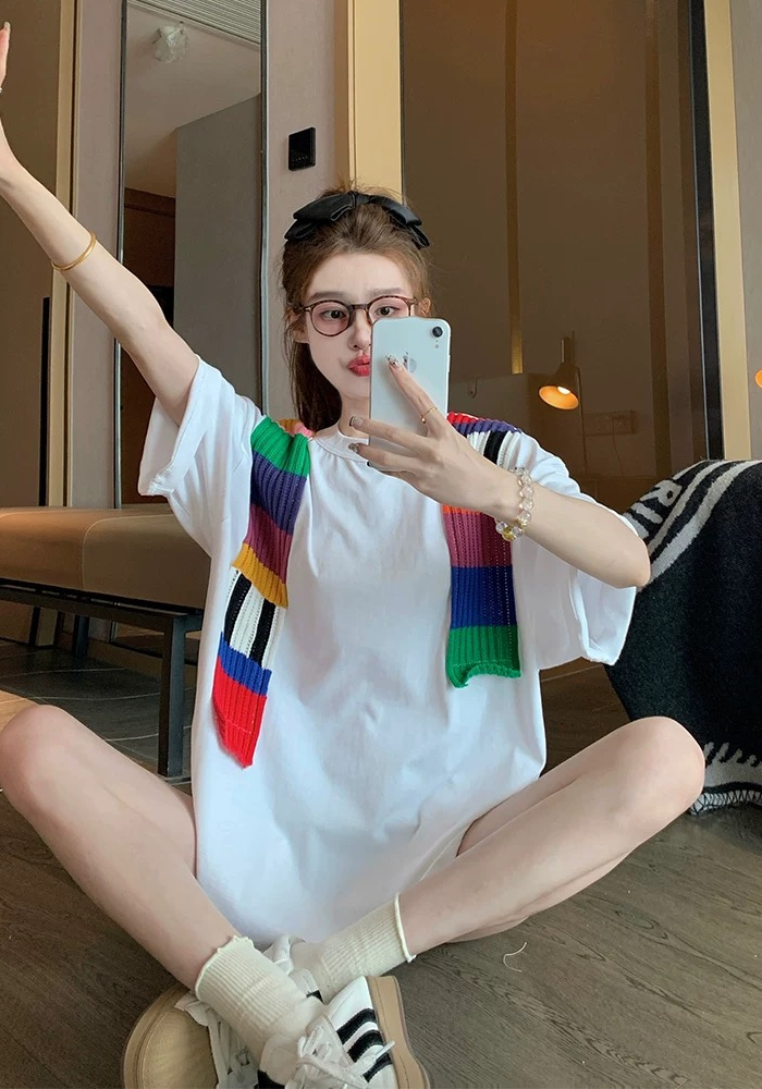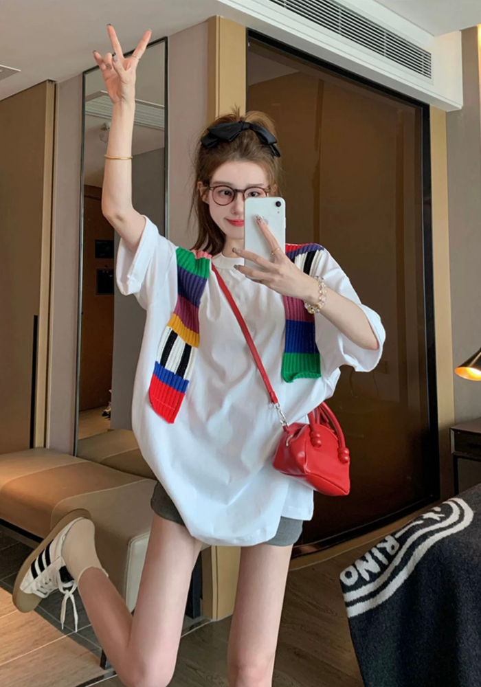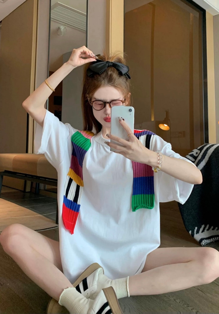 The unique spliced shawl design adds a sense of layering, making this T-shirt no longer monotonous and very stylish🌈