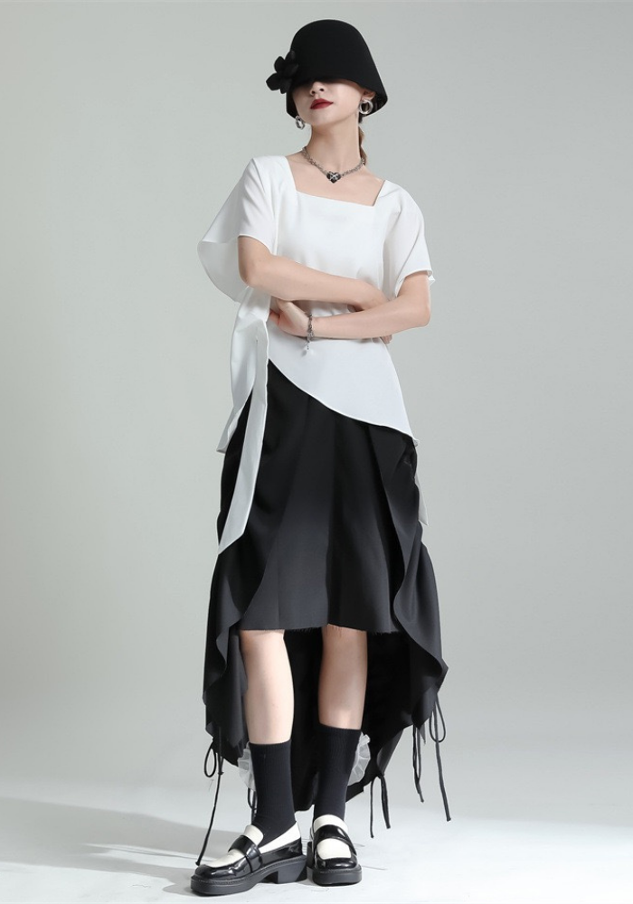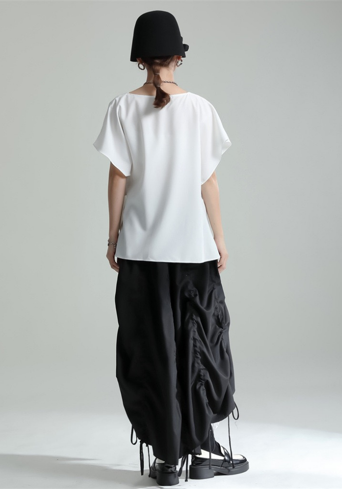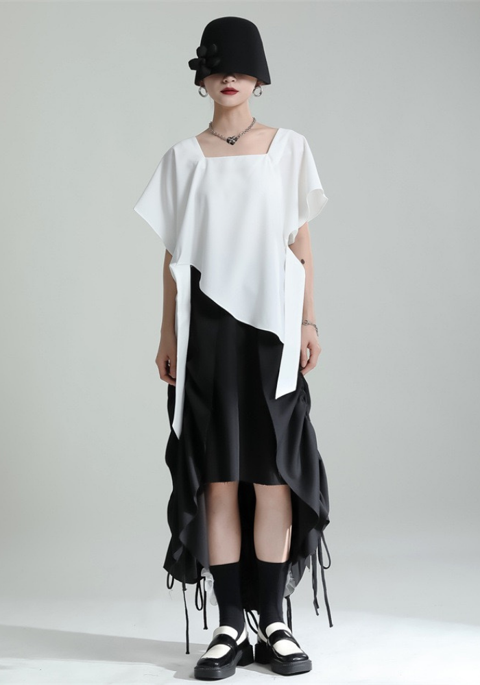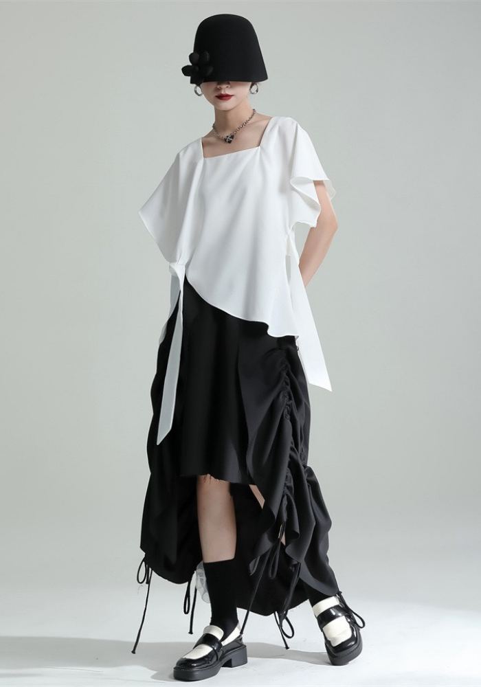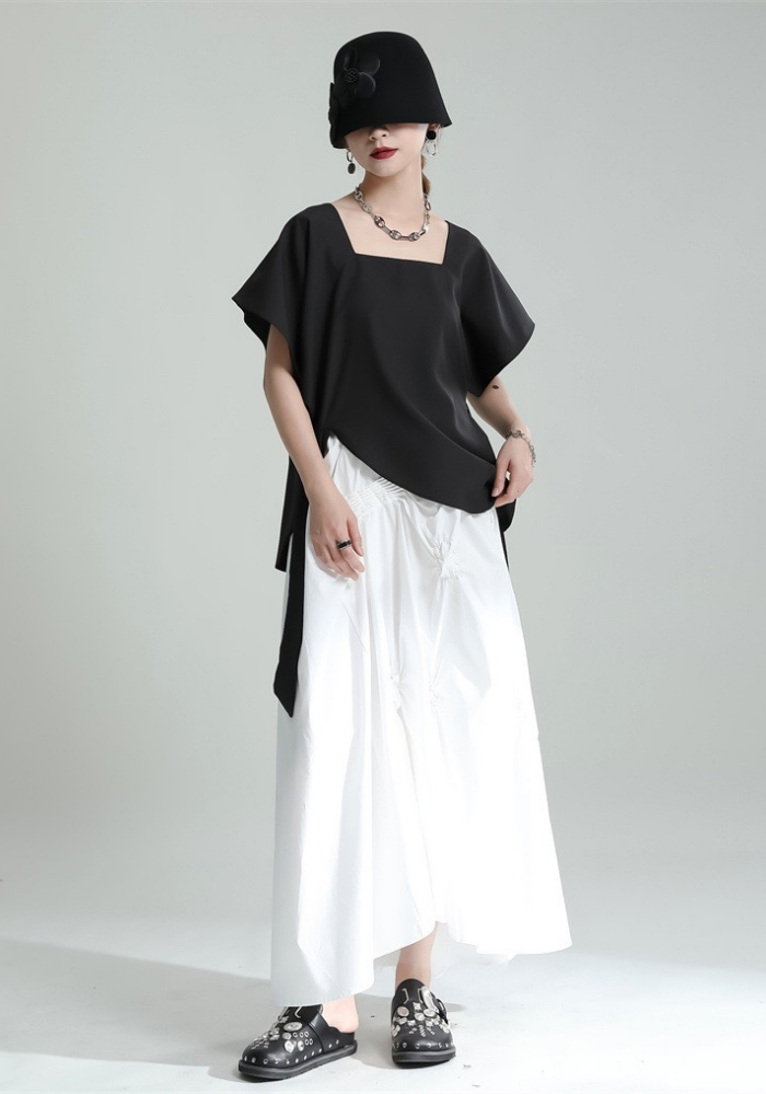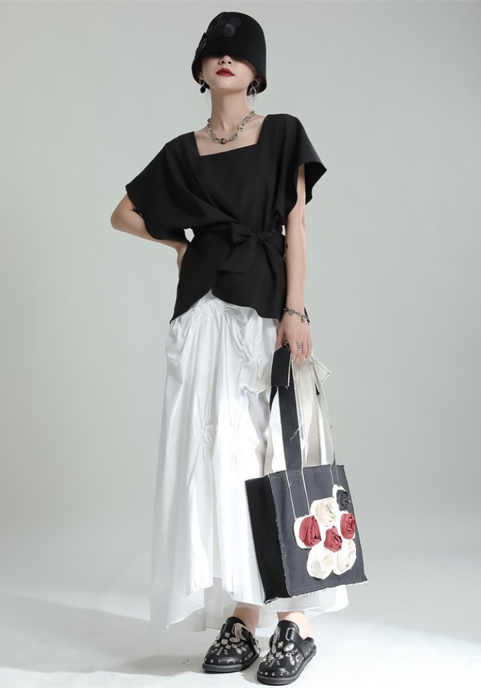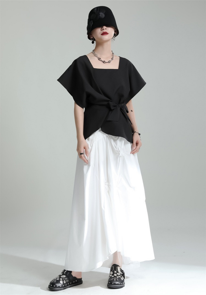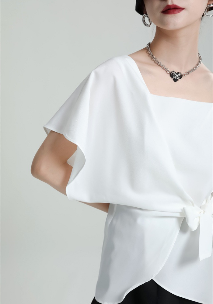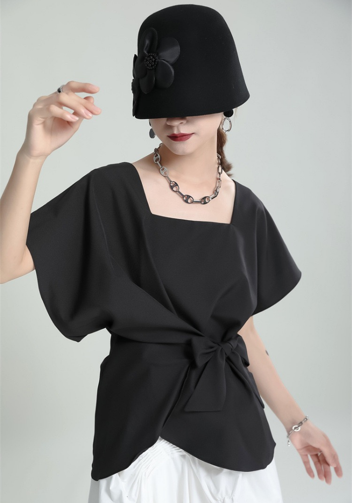This square-neck ribbon-tied short-sleeved top adopts a simple and elegant design. The square neckline highlights the neck line and adds a bit of sophistication🌈