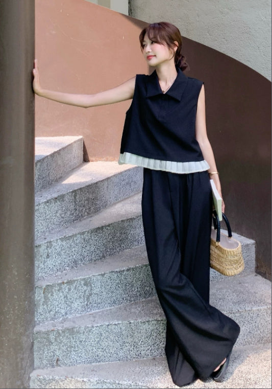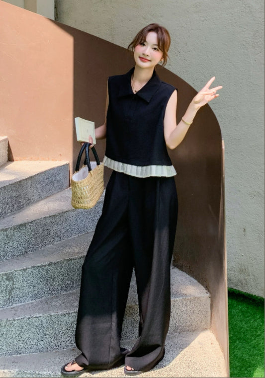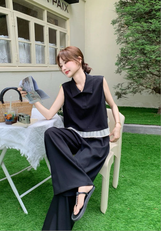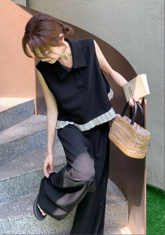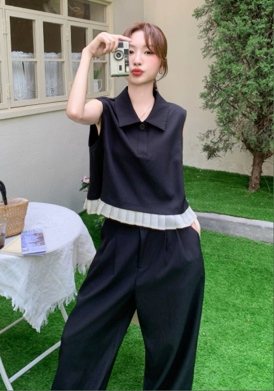 Polo領無袖套裝