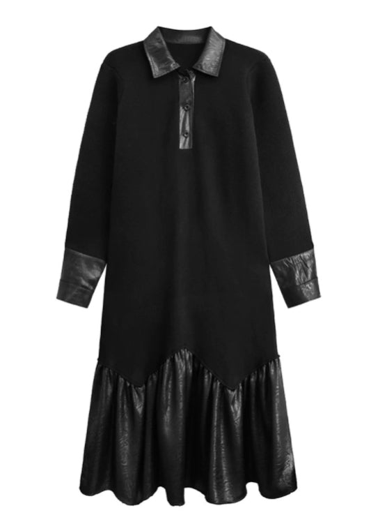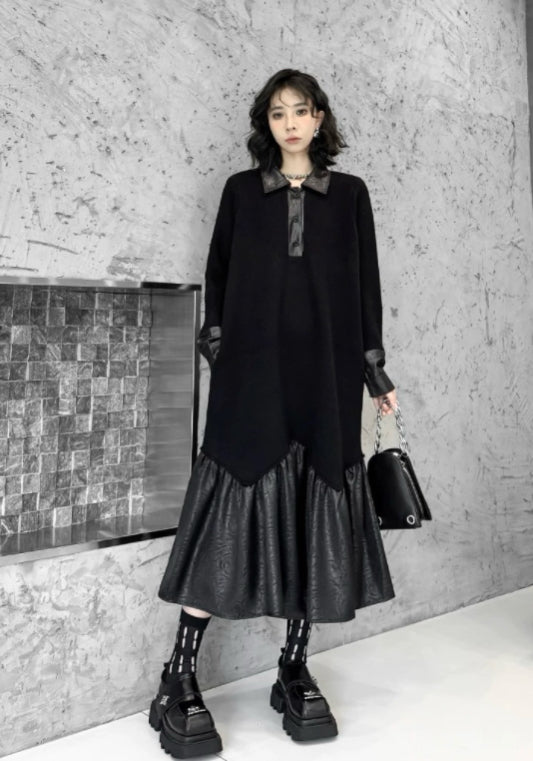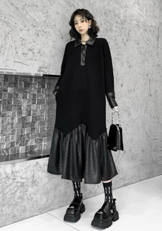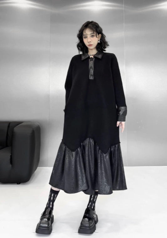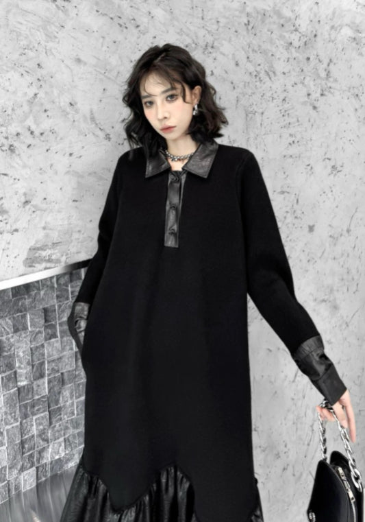 高級感黑色連衣裙,結合光澤感領口與袖口,低調中帶點酷颯氣質。✨