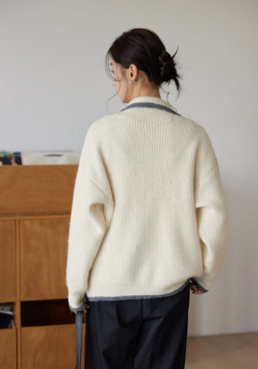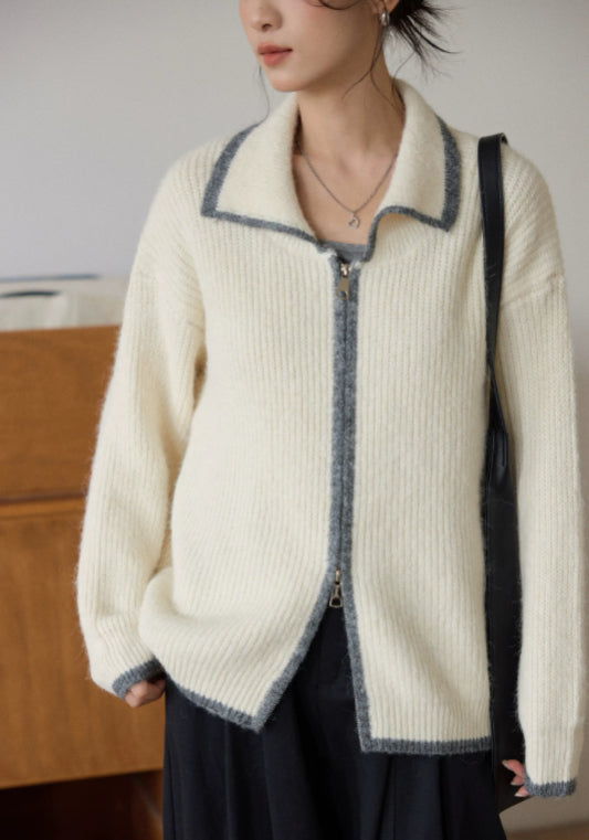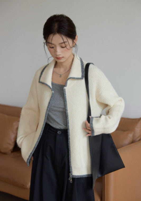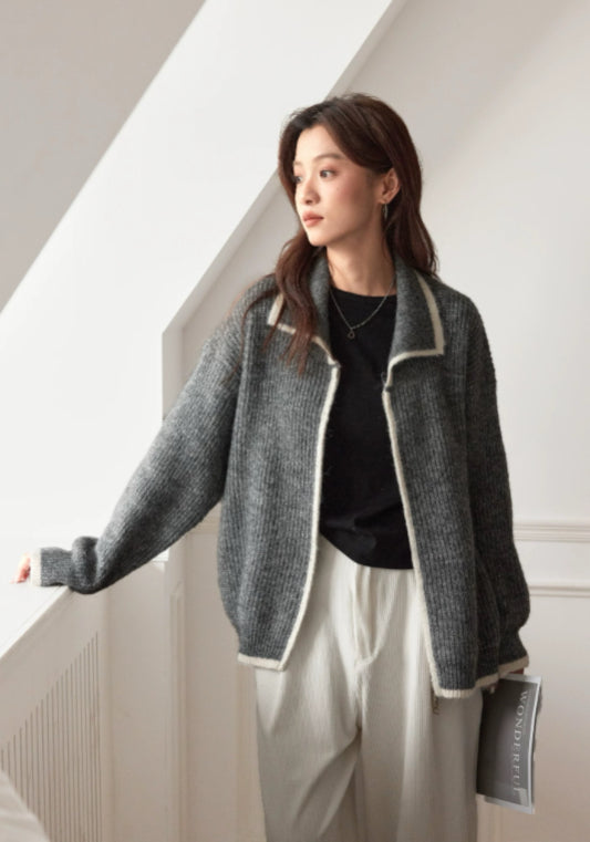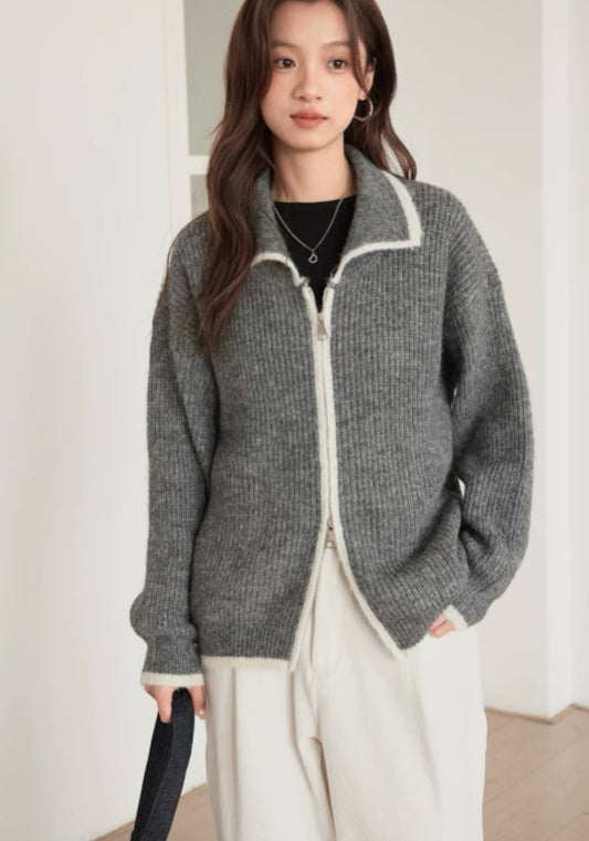呢款拉鍊針織外套厚實保暖,版型鬆弛好着。