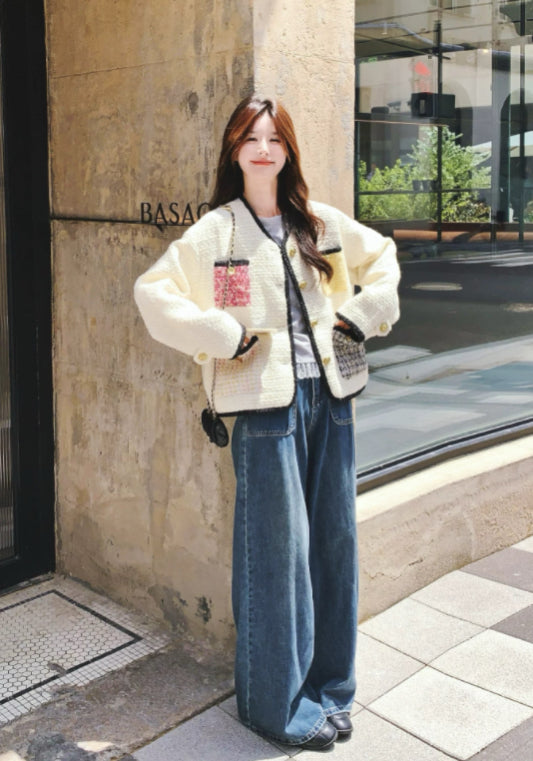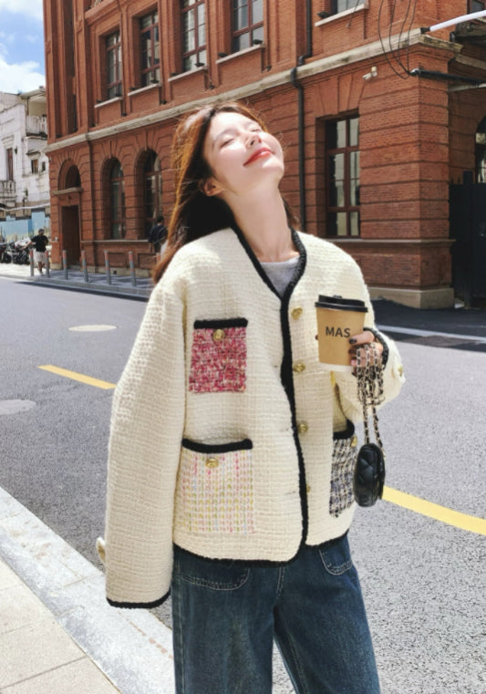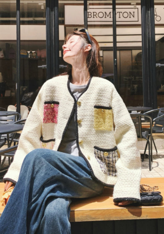 撞色口袋小香風外套