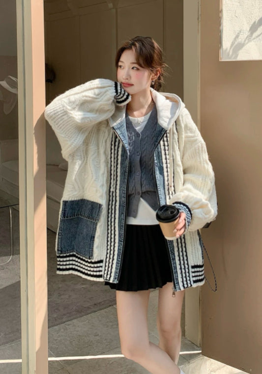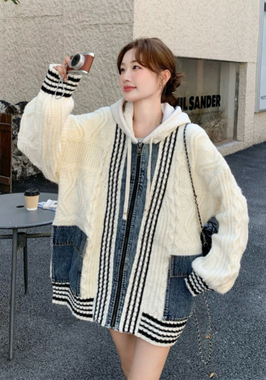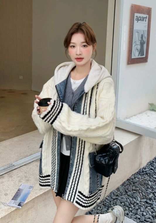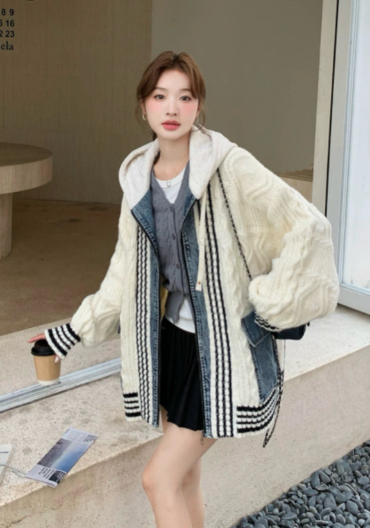 呢件外套混合牛仔同針織設計,層次感好豐富。