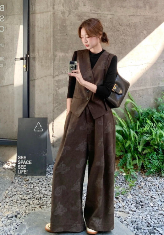 老錢風高級感套裝,馬甲配闊腿褲設計,幹練優雅。