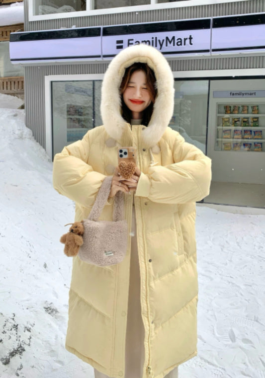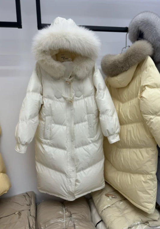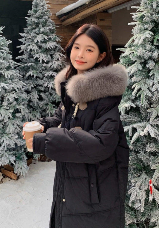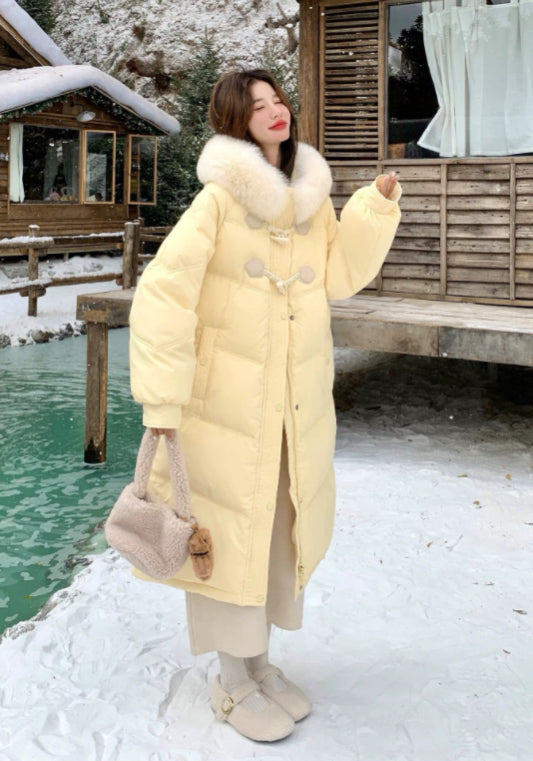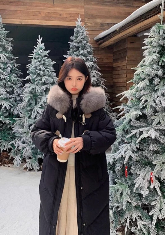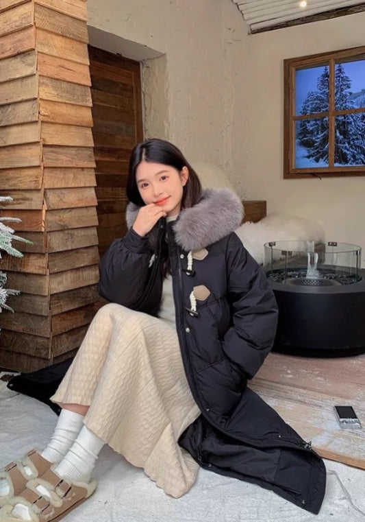毛絨牛角扣羽絨服
