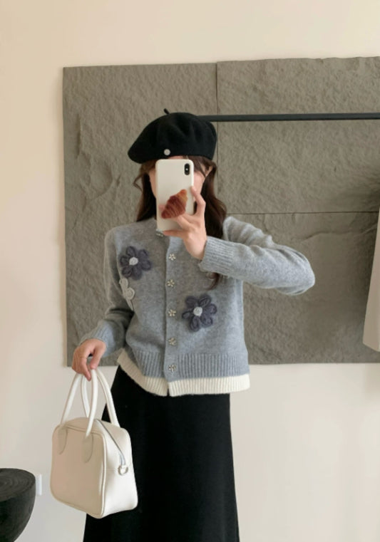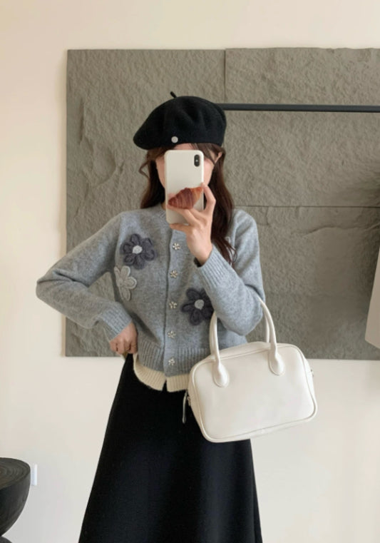 精緻花朵釘珠裝飾,增添柔美氣質。