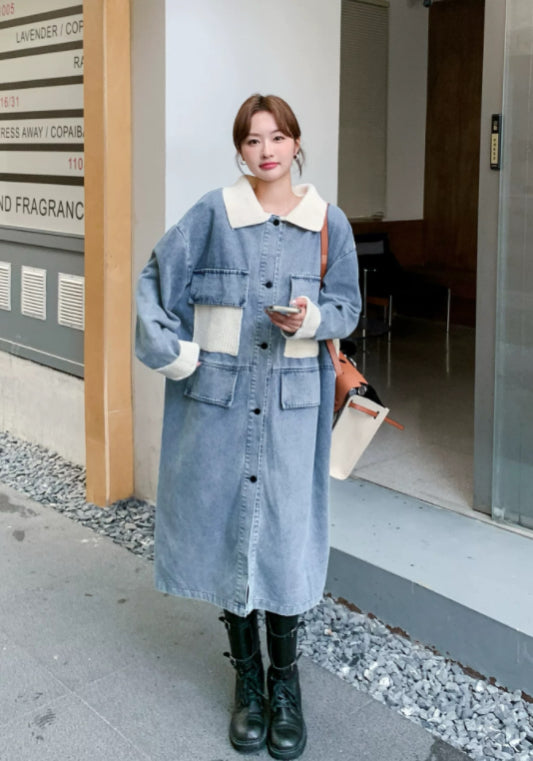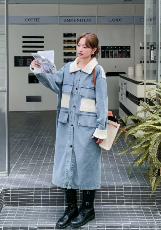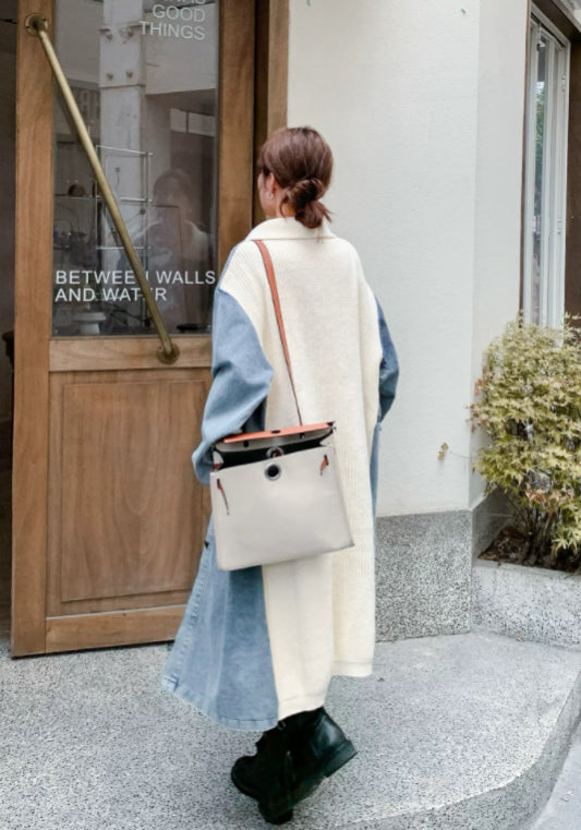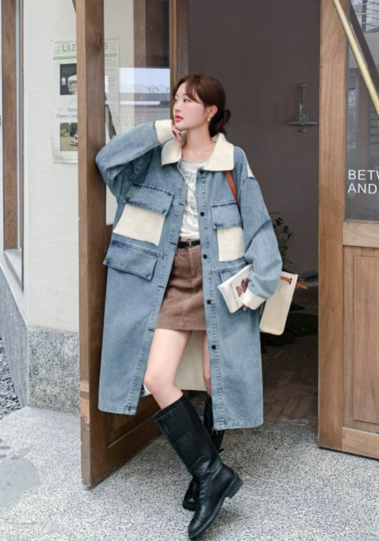 牛仔外套混織毛呢設計,好穿又有層次感。