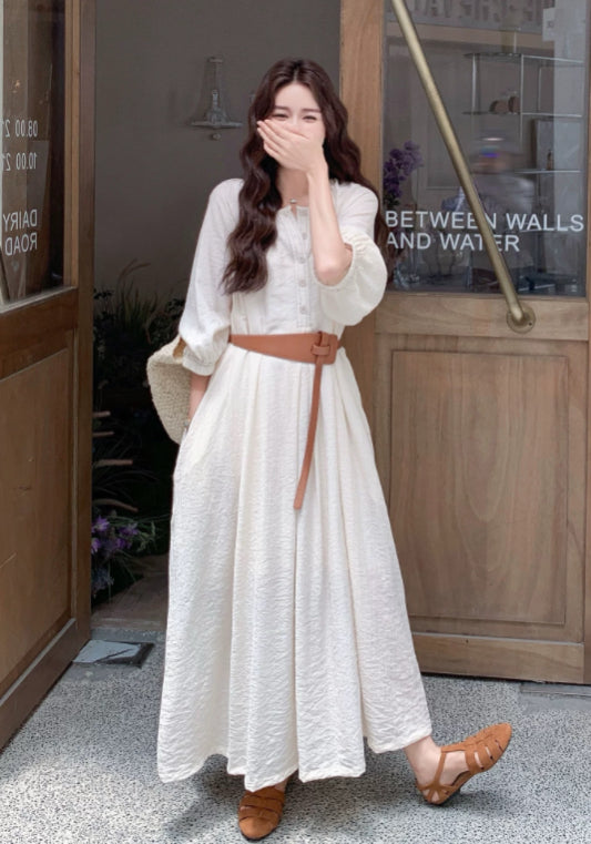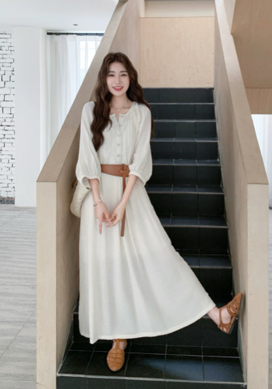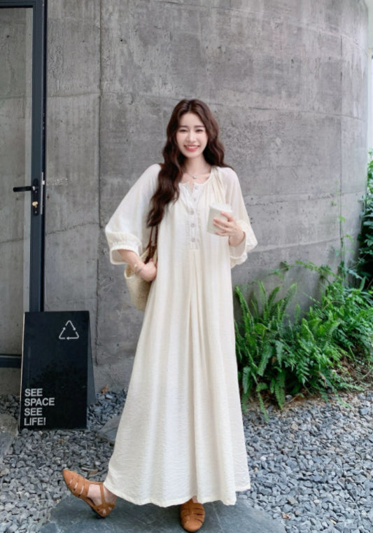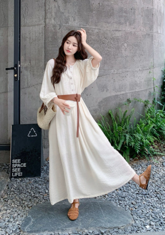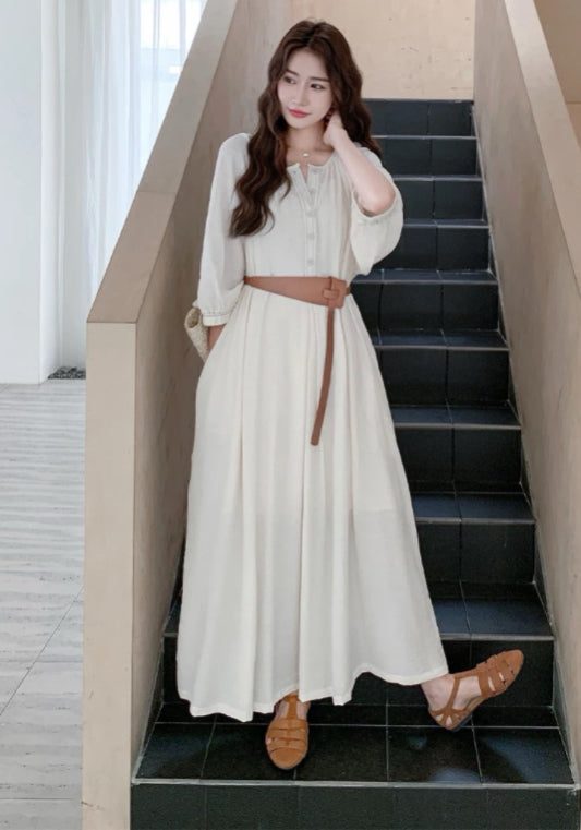 米色長裙,柔軟輕盈,舒適透氣。👒