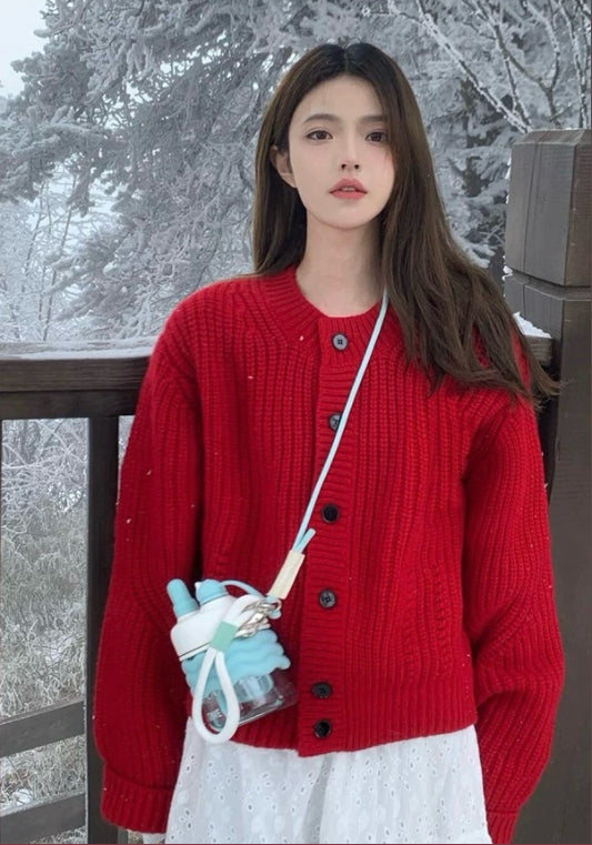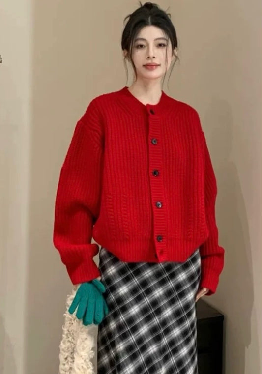 紅色毛衣開衫