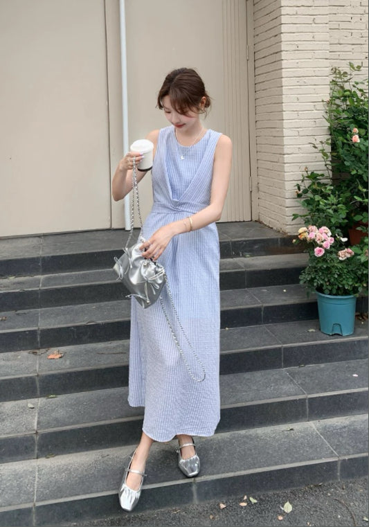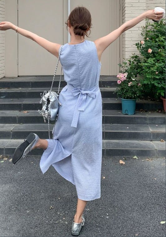 藍色無袖收腰裙