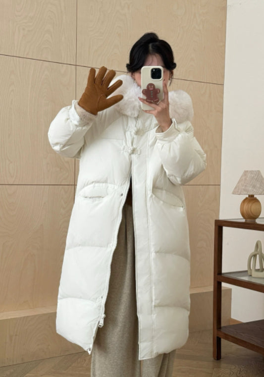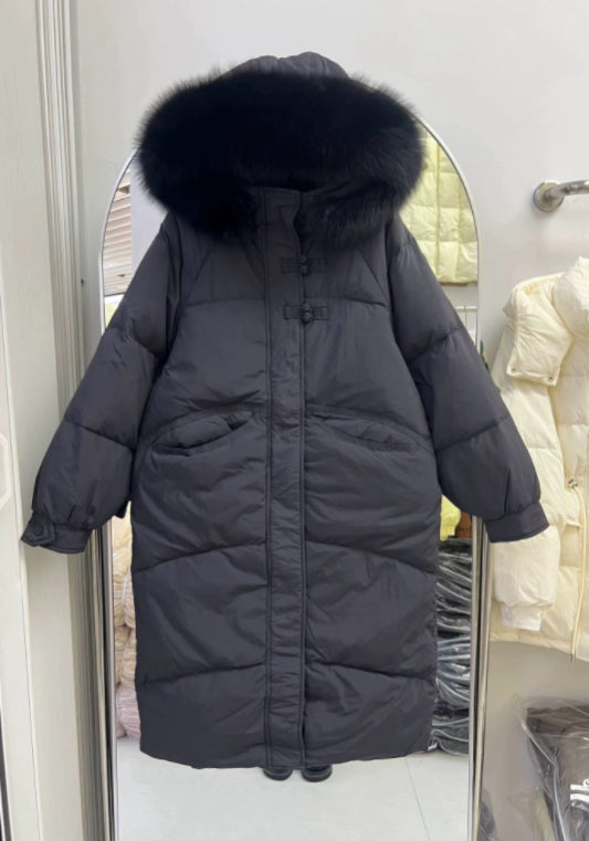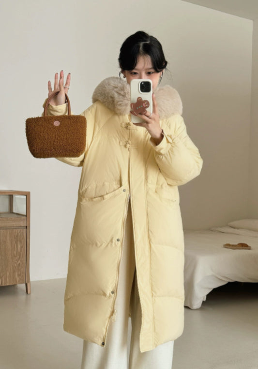 厚實保暖嘅中長款羽絨外套,冬天着住超有安全感。