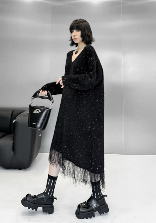 V領剪裁修飾臉型,整體氣場高級摩登。