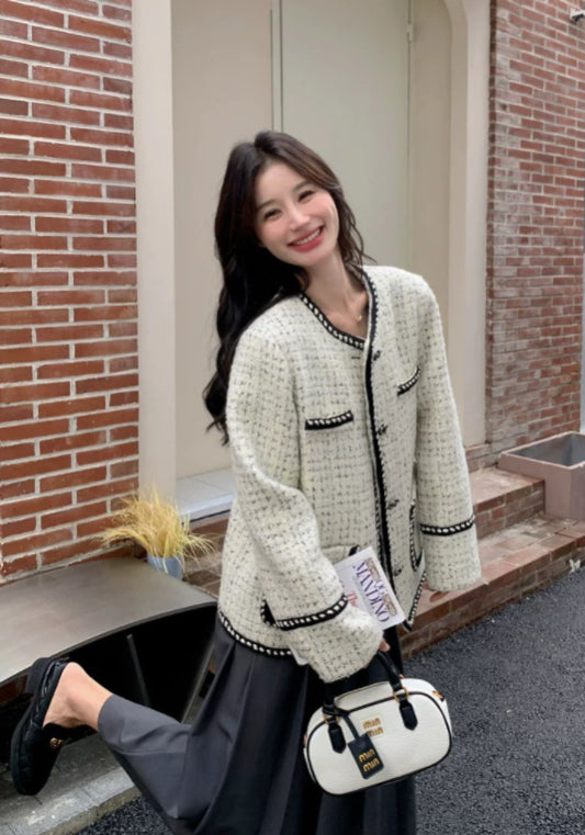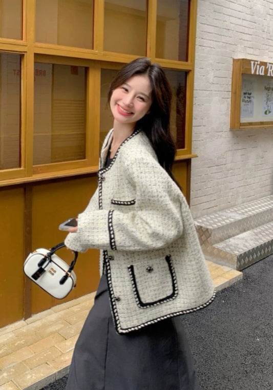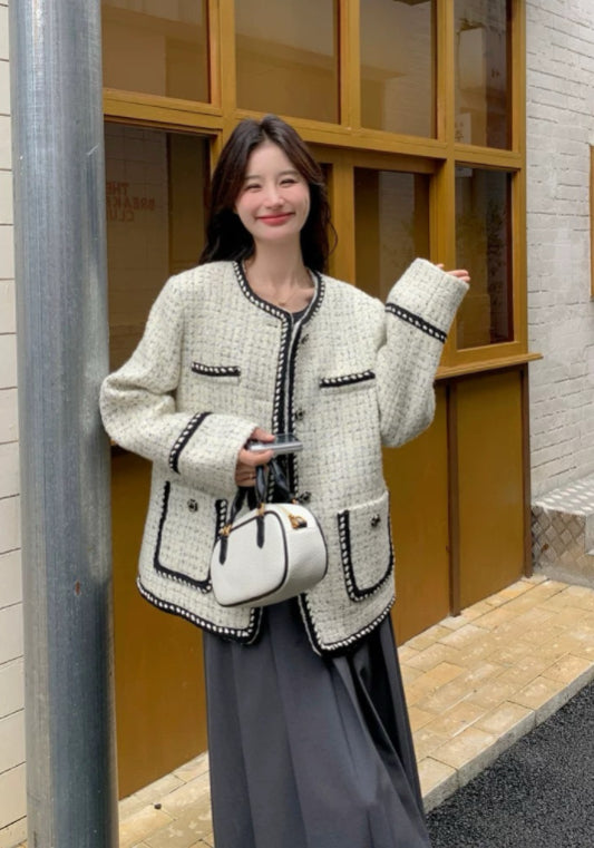 黑白撞色小香風外套
