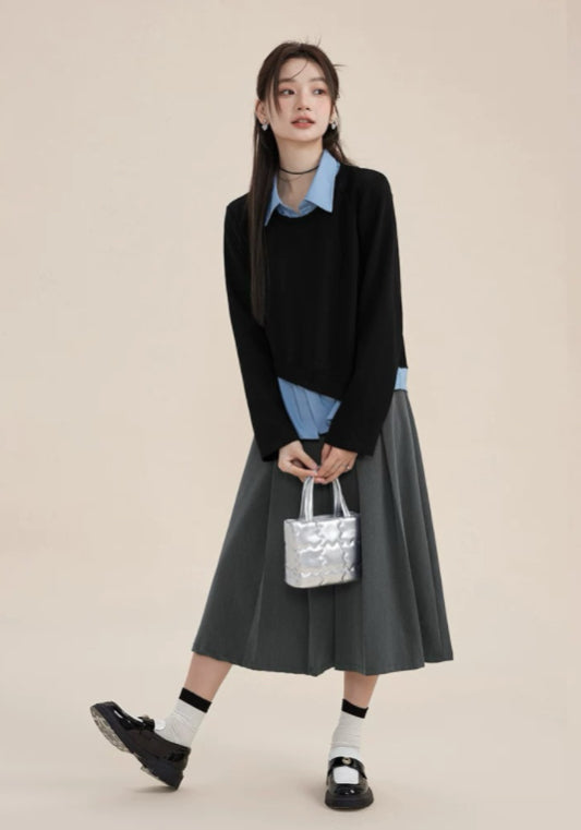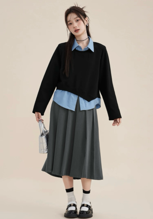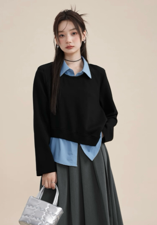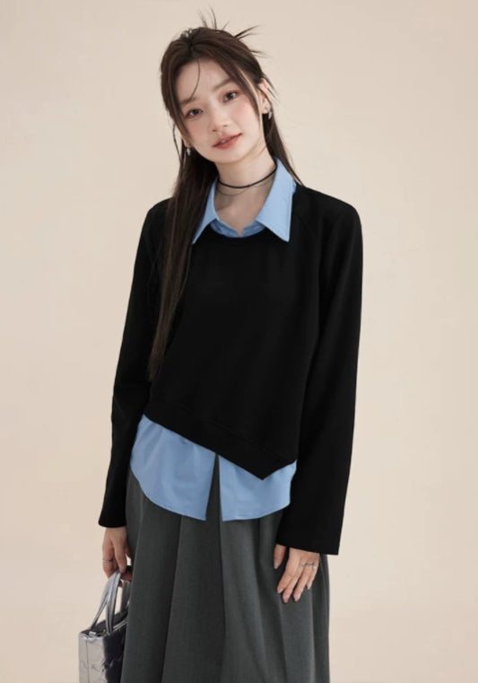 黑藍假兩件上衣